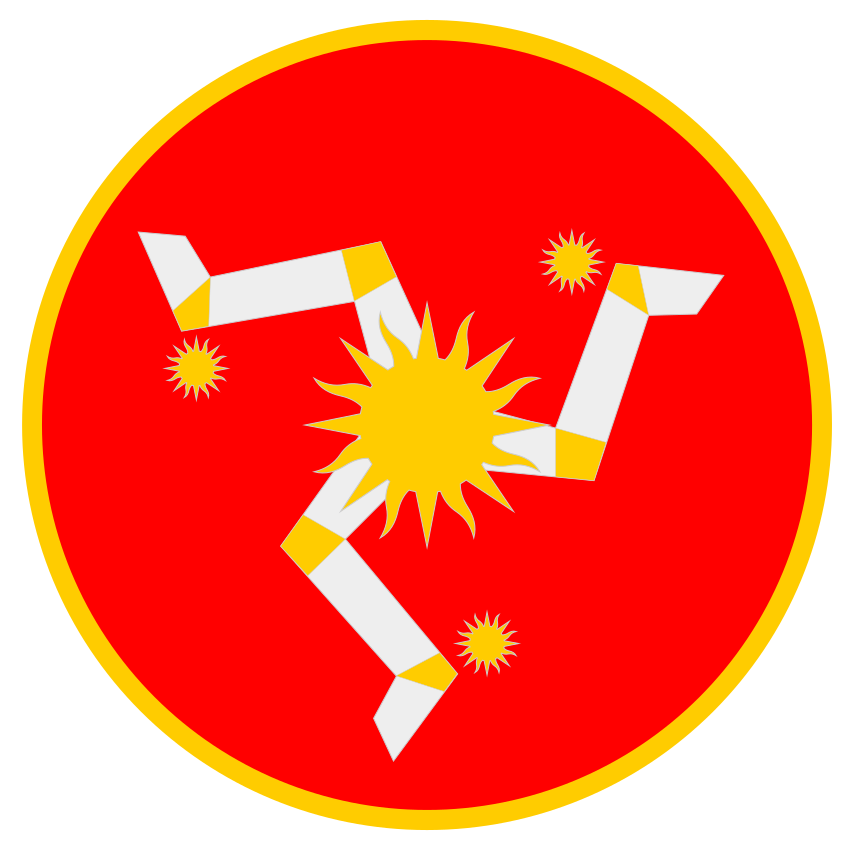 L’emblème de Man est le triquètre héraldique, formé de trois jambes, armé et doté d’éperons, emblème des rois de Man au XIIIe siècle. Il symbolise la course visible du soleil avec ses trois moments : crépuscule du matin, zénith, crépuscule du soir.