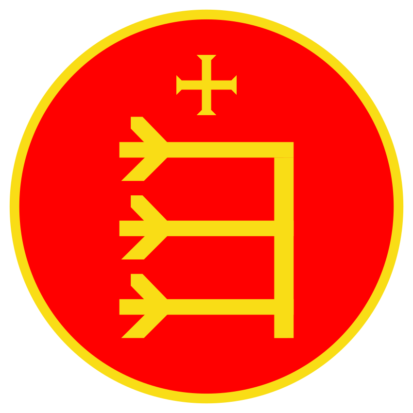 The regional emblems use the heraldic leopards of Normandy. The linear stylization of this figure corresponds to the sign commonly known as the “rune of life.” The use of this sign is justified by the Scandinavian origin of the founders of the duchy, who gave it its name. This sign may also be used to represent all Normans.